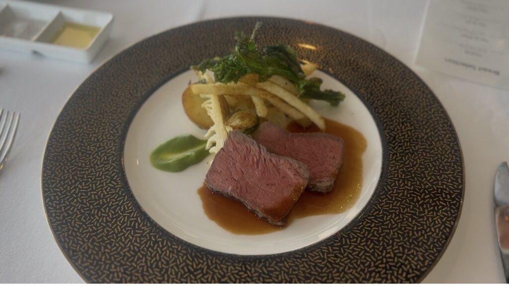 氷温熟成アンガス牛ロースのグリエは、お肉はもちろん、添えられたポテトや旬のお野菜もサクッと揚げられていて、食感も楽しめる一皿でした。