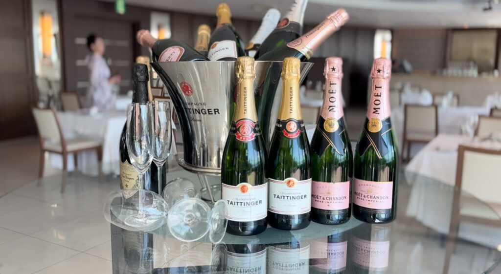 まるで豪華客船のダイニングにいるような開放感あふれる空間に、一気に日常を忘れます。